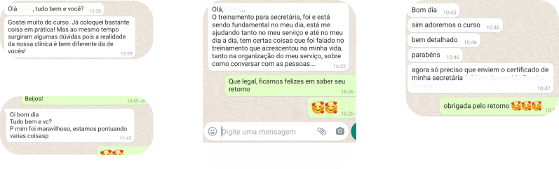 X Não é um curso de gestão de conflitos, mas a tua secretária estará preparada para enfrentar qualquer situação de conflito, saberá como lidar com os diversos tipos de pacientes que existe, te desafogando de pequenos problemas que a tua secretária poderá resolver sozinha.