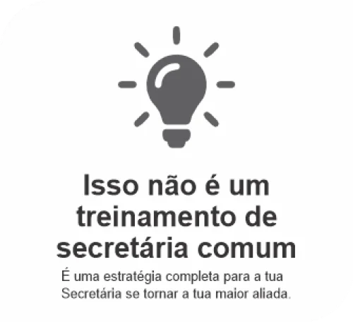 Eu também já sonhei que a minha secretária fizesse desde as tarefas básicas até me ajudar a vender, mas eu não tinha um método e sofri muito. Por isso desenvolvi o Treinamento Secretária dos Sonhos. Um treinamento para qualificar a secretária de forma definitiva com aulas curtas e gravadas que ela poderá assistir durante o expediente de trabalho, sem precisar ficar pagando horas extras para ela assistir as aulas fora do horário de expediente.