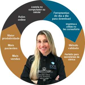 O Treinamento Secretária dos Sonhos é um curso completo, que aborda desde o desenvolvimento pessoal da tua secretária, passando pela comunicação verbal e não verbal que ele deve ter, organização da tua clínica, lista de procedimento, tabela de rotinas, checklist de estoque encerrando com Marketing, que engloba captação de pacientes, relacionamento com os pacientes e marketing interno.